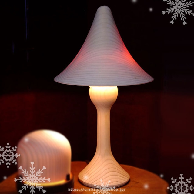 灯樹色(つりぃ) M size / 工房 灯のたね ベッドサイド、寝室に、間接照明に、木のぬくもりがやさしい、シンプルでおしゃれでインテリアにも素敵なかわいい木製スタンドライト。 -------------------------------------------------------------------------------- 木を染め、木の間からこぼれる光がなんとも暖かい、 木製のスタンド式スタンドライトです。 北海道を代表する樹木、針葉樹の形をしており、 雪の乗った針葉樹林を思わせるような白に、全体的に丸みを帯びた、優しく滑らかな形。 こぼれ落ちる明りが、暖かくつつみこむように周りの空間を彩る、 樹の色を灯す照明、「灯樹色(つりぃ)」です。 ▽ 灯樹色(つりぃ)Sサイズもあります https://craftkan.theshop.jp/items/23228644 インテリアの邪魔にならないよう コードは白っぽい、スケルトンなものを使用していますので、 あまり目立たずご使用頂けます。 スイッチを上下に動かして、ライトのON、OFFを操作できます。 底面にはランプの詳細が書かれたシールが貼られているので、 どんなライトか知った上で、安心してご利用頂けます。 電球が切れてしまった際には、底面の穴の奥にあるネジを3か所外して頂くと 傘(上の3段になっている木の部分)が一体になって外れるようになっており、 電球の交換後、傘の内側の「コード位置」シールと 台座(電球がついている木の幹の部分)からコードが出ている位置を合わせて頂いて ネジを戻していく形となります。 *必ず電源プラグを抜いてからの作業をお願い致します *ネジを外す際は傘が落下しないようご注意下さいませ *使用後は電球が熱くなっている場合がございますので、電球が冷えている事を確認して火傷にご注意下さい *ネジを戻す際はきつく締めすぎないようご注意下さいませ 寝室に、玄関の棚に、暗闇を照らす間接照明として、 食卓、リビングなどでちょっとお洒落な雰囲気を演出したり… 木の温もり溢れるライトで、心もホッと灯しませんか♪ ▽つりぃの作製の一部を見せて頂きました! https://www.youtube.com/watch?v=pucvnMAomWI - - - - - - - - - - - - - - - - - - - ○製造:工房 灯のたね(北海道旭川市) ○商品サイズ:約 φ185 × H290 mm ○コード長:透明コード 1.5m 中間スイッチ付き ○電球:40W(相当)電球形蛍光ランプ球 × 1個 ○材質:松材 ○塗装:オイル塗装仕上げ ○備考 ・お使いのディスプレー等により色が異なって見える場合がございます ・同じ材料から作られた同じ製品でも、フシの有無や木目、色合いなどが一つ一つ異なります 自然素材、天然素材ならではの個性をお楽しみ頂けましたら幸いです [スタンドライト コンセント式 インテリアライト ナイトライト 間接照明 間接照明のある暮らし おしゃれな照明 木のぬくもりのある暮らし ツリーモチーフ 木の形 北海道産トドマツ 木製雑貨 ナチュラル雑貨 ナチュラルテイスト 北欧 カジュアル シンプル かわいい 木目 天然木 インテリア雑貨 リビング ダイニング 寝室 新築祝い 引っ越し祝い 結婚祝い 木婚式 誕生日 クリスマス 父の日 母の日 敬老の日 バレンタイン ホワイトデー ギフト プレゼント] - - - - - - - - ▽ 灯樹色(つりぃ)Sサイズもあります https://craftkan.theshop.jp/items/23228644 ▽工房 灯のたね さん一覧ページ https://craftkan.theshop.jp/categories/1931441 ▽木、葉っぱ、植物モチーフ一覧ページ https://craftkan.theshop.jp/categories/3712570 - - - - - - - - ▽ 最短配送日、在庫数、木製品のお取り扱い に関して https://craftkan.theshop.jp/items/85815837 - - - - - - - -