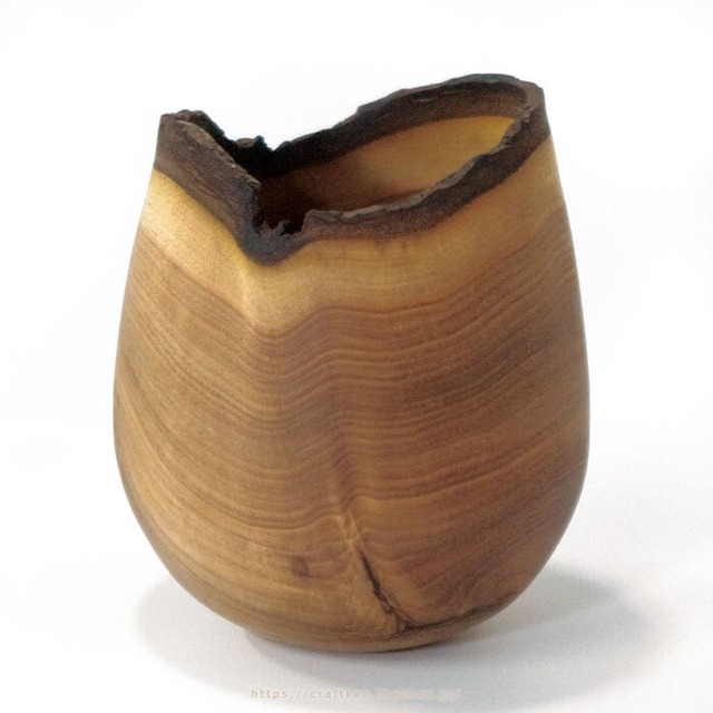臼田さんの所有している小さな森から出た間伐材や、 個性が強いためにチップして、紙や、燃料になってしまう木から 自然の風合いを生かして作られた、1点物のうつわです。 個性豊かな表情や、形、そしてやさしい手触りをぜひお楽しみくださいませ。 フチの皮の部分は負荷をかけると取れてしまう事がありますので、 水洗いは避け、乾いた布で拭くようなお手入れでお楽しみ頂けましたら幸いです。 また、生花を飾る際は、中に別な花器を入れて頂くなど、うつわに水を直接入れないようお願い致します。 チェンソーで挽き割り、乾燥させずに生の状態で削り仕上げ、 2週間程乾燥させて、最後に食用のクルミオイルを塗ってしあげられている、臼田さんのうつわたち。 長い間森で育った樹々を少しでも活用し、 1点1点表情が異なるうつわに、その木が森で生きてきた時間を感じてもらえたら…そんな想いで仕上げられています。 木肌を生かし、食用のクルミ油で仕上げられているので 肌触りもとっても優しく心地よい器です。 ご自宅用のほか、木の雑貨・小物が好きな方へのプレゼント、贈り物にも人気の インテリアにもおしゃれな木のうつわ、ぜひ実物でご堪能頂けましたら幸いです。 ▽クラフト蒼(臼田健二)さんのその他の作品は↓こちら https://craftkan.theshop.jp/categories/1931436 - - - - - - - - - - - - - - - - - - - ○製造:臼田健二(クラフト蒼)(北海道上川郡下川町) ○商品サイズ:高さ 約16cm 直径 約12cm 口部分の内径 約9.8cm ○材質:キハダ ○塗装:オイル仕上げ ○備考 ・なるべく忠実に表現するよう努めておりますが、お使いのディスプレー等により、色が多少異なって見える場合がございます。 ・在庫管理には注意を払っておりますが、実店舗と共通の在庫のため タッチの差でお渡しできない場合がございます。 ご不便おかけしますが予めご了承いただけましたら幸いです。 ・営業日の兼ね合いで最短のお届け予定日より早くお届けできる場合もございます。 お気軽にご相談下さいませ - - - - - - - - - - - - - - - - - - - 木製品のお取り扱いに関して ・製品になってからも、木は呼吸を続けます。 空気中の湿気を吸い込んだり、乾燥していれば湿気を放出したりします。 そのため、湿気や、日光などの影響で膨らんだり、縮んだりする事があり、収縮を繰り返して反り返ってしまうような場合がございます。 また、強い日差しに晒されると乾燥して湿気が無くなり、急な変化に対応出来ない場合には割れが生じてしまう事があります。 もちろん、日光に当たればその分日焼けもしますので、エアコンの風が直接当たる所や、ストーブ等が近すぎる所などの乾燥の激しい場所、直射日光の当たる場所は極力避けてお使い下さい。 ・お手入れの仕方。 ホコリ程度でしたら、乾いた布で拭き取る事をお勧めします。 汚れが気になる場合には、水にぬらしてからしっかりと絞った布で水拭きをして下さい。 水分を含み、上記のような膨張などが起こってしまう場合が御座いますので、お掃除の際にも水分に長時間浸さないようお願い致します。 ・色が変化していきます。 使う事により、経年色が変化していき、使い込んだ物ならではの、さらに深い味わいのあるものへと変化していきます。 愛用して頂き、是非その新品には出せない味をご堪能下さい。 - - - - - - - - - - - - - - - - - - - 最短のお届け日は目安です。 お届け先の地域や、お支払方法等によって前後する場合がございます。 (通常、発送から 道内→翌日~翌々日でのお届け / 道外→2~4日後でのお届け です) お急ぎの際はお気軽にご相談下さいませ。 - - - - - - - - - - - - - - - - - - - ▽クラフト蒼(臼田健二)さんのその他の作品は↓こちら https://craftkan.theshop.jp/categories/1931436 ▽その他の花器 一覧ページ https://craftkan.theshop.jp/categories/1933997 - - - - - - - - - - - - - - - - - - -