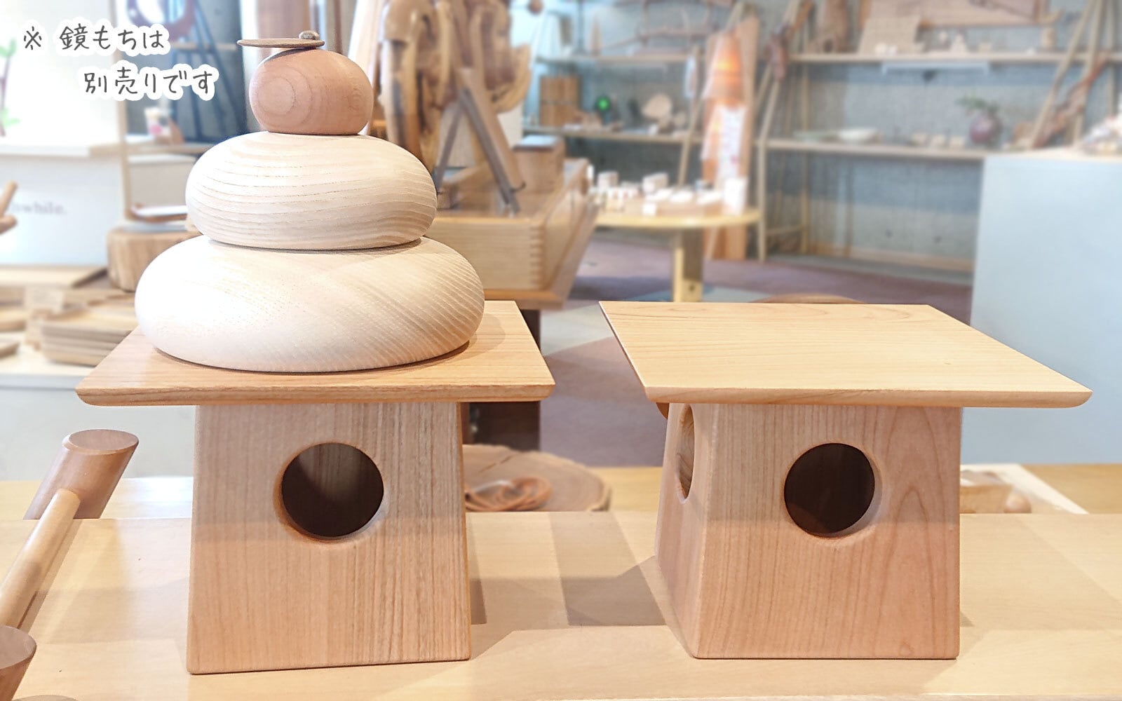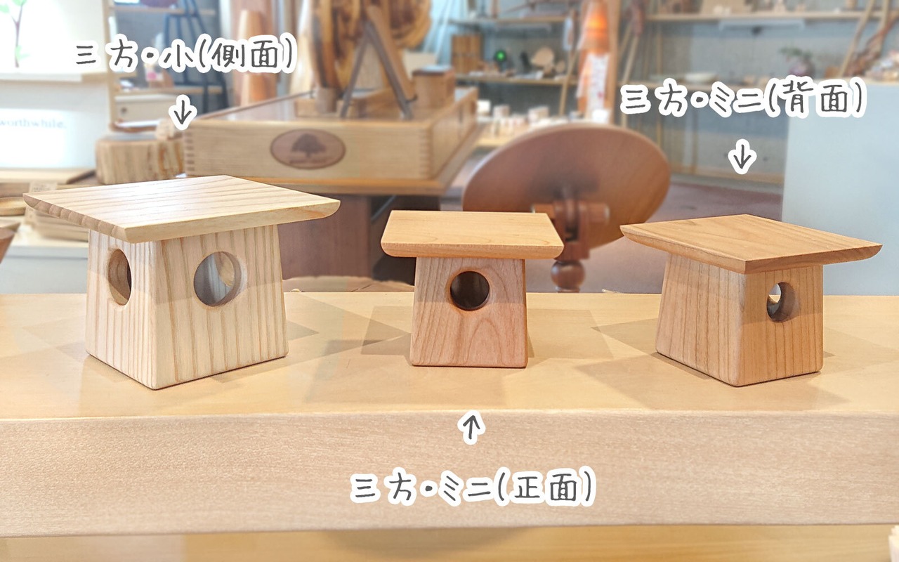 (「三方・大」にピッタリな木製の鏡餅(写真で乗せているお品)もあります → https://craftkan.theshop.jp/items/53755876)
