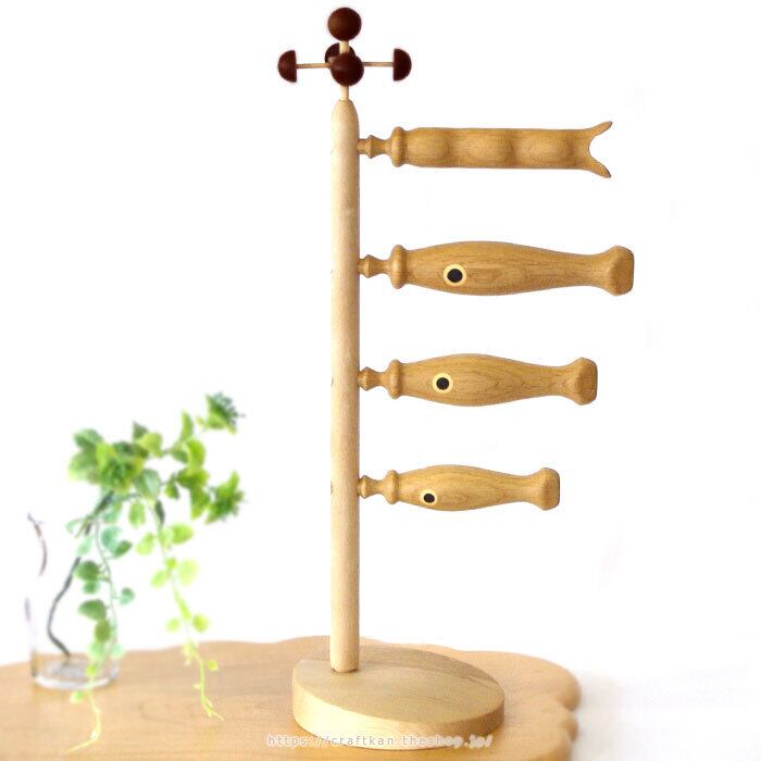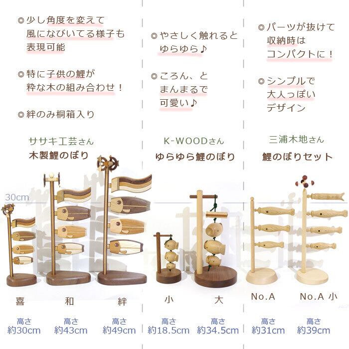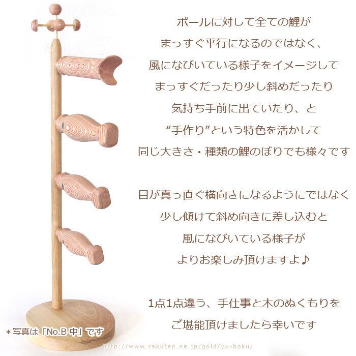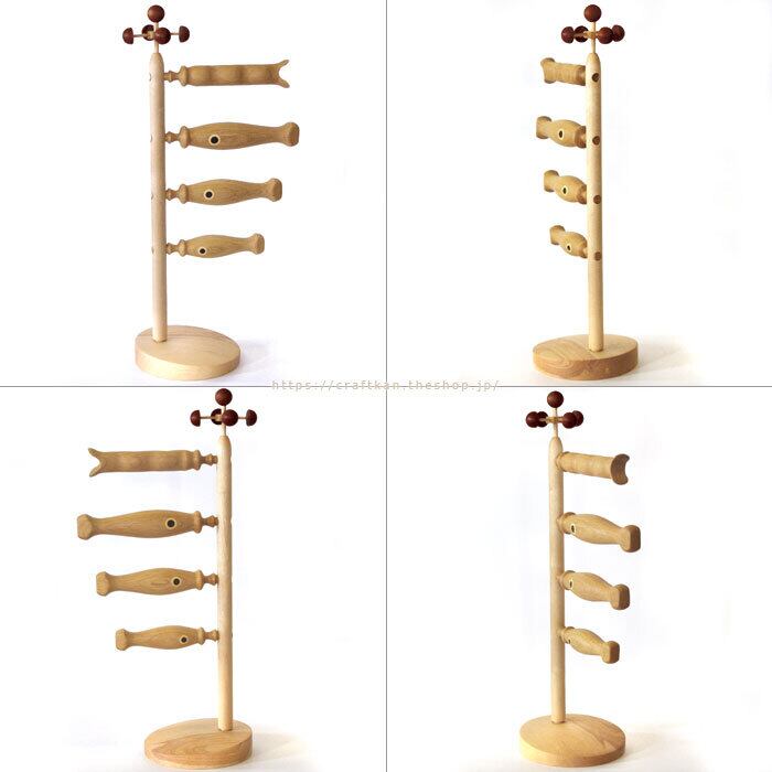 ○材質:台、ポール→カバ / 鯉本体、吹流し→ナラ、他