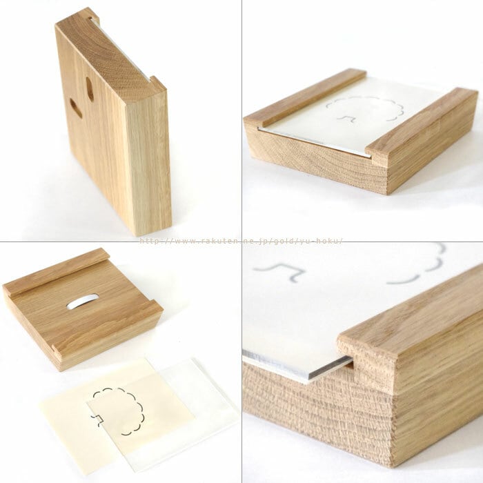 また、留め具はありませんが、本体に仕掛けがあり、縦に飾っても中のポストカードが落ちないようになっていますよ。