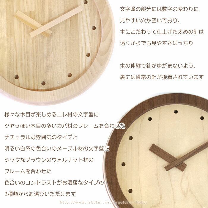 すっきりとした、シンプルなデザインが魅力的な木製壁掛け時計です。