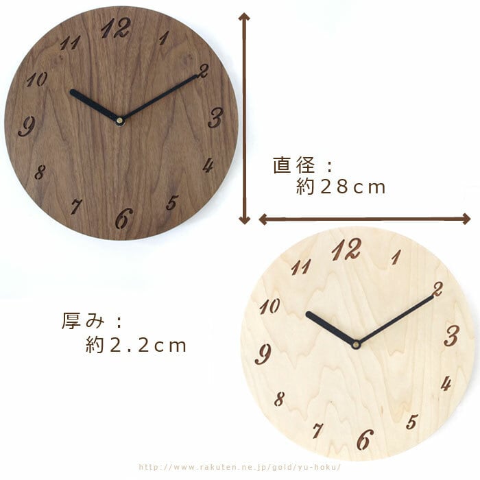 様々なお部屋にマッチするシンプルデザインでおしゃれな、秒針の無い木製壁掛け時計