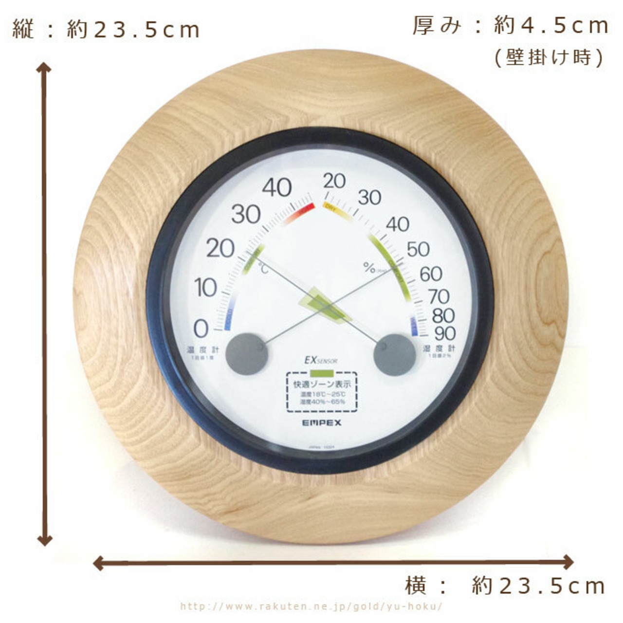 温度計は0度から+45度まで、湿度計は20%から90%までのメモリがついています。