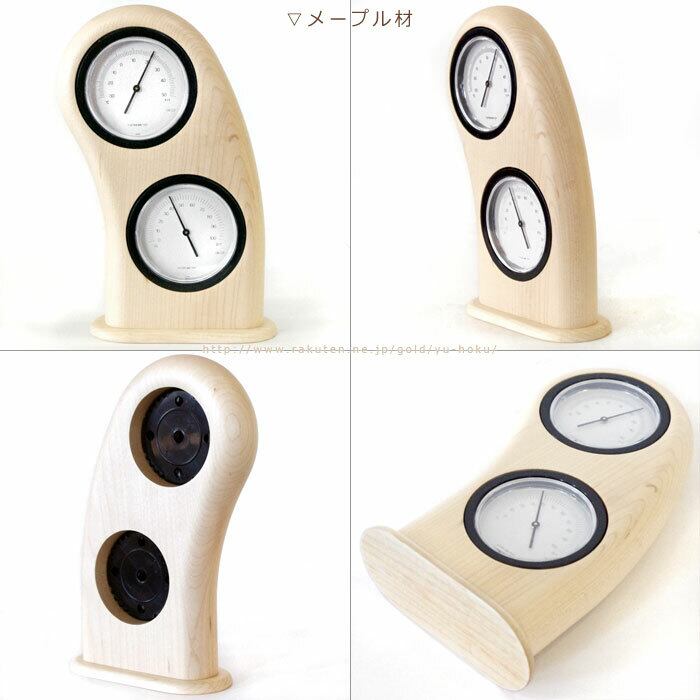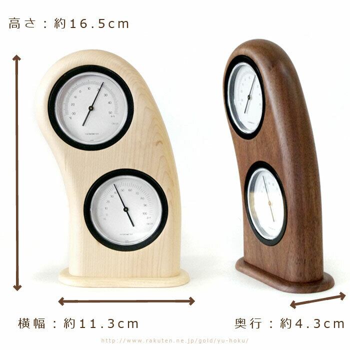 にっこりと笑っている様子をイメージした、滑らかな曲線がやさしい置き型タイプの室内用の木製温湿度計です。