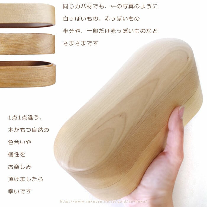 手に馴染んで持ちやすい、木製のお弁当箱です。