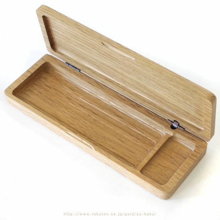 外側からは蝶番が見えにくいよう、見た目にもこだわった仕上がりの木のペンケース、