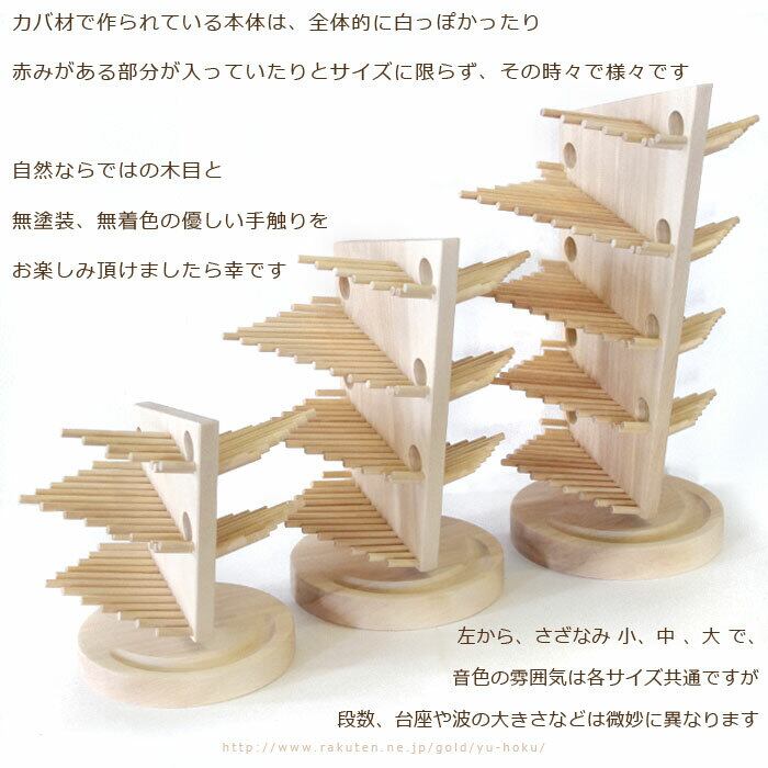 無着色、無塗装で、木、そのままの色、手触りを生かした作品が奏でる音を、是非お楽しみ下さい。