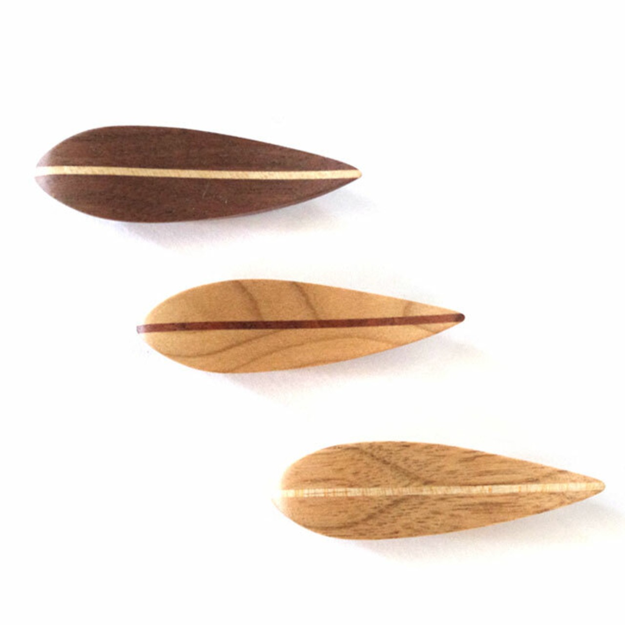 川面をゆらゆらと流れる木の葉をイメージし、優しい曲線と木のぬくもりがあたたな箸置きです。