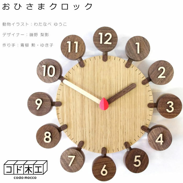 数字がイラストに差し替え可能な、 小さなこどもといっしょに時間を楽しむ木製壁掛け時計