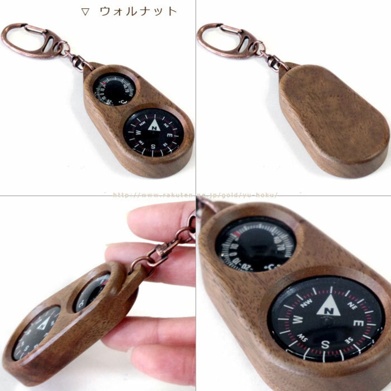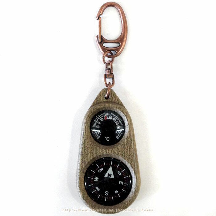 オイル入りの高級なコンパスを使用した、温度計付きの方位磁石キーホルダーです。