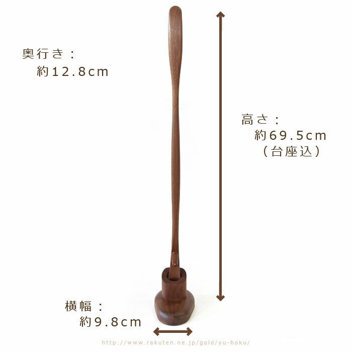 持ち手から、靴べら部分までの長さがあるため、立ったまま使用できるロングタイプの、台座付置き型靴べらです。