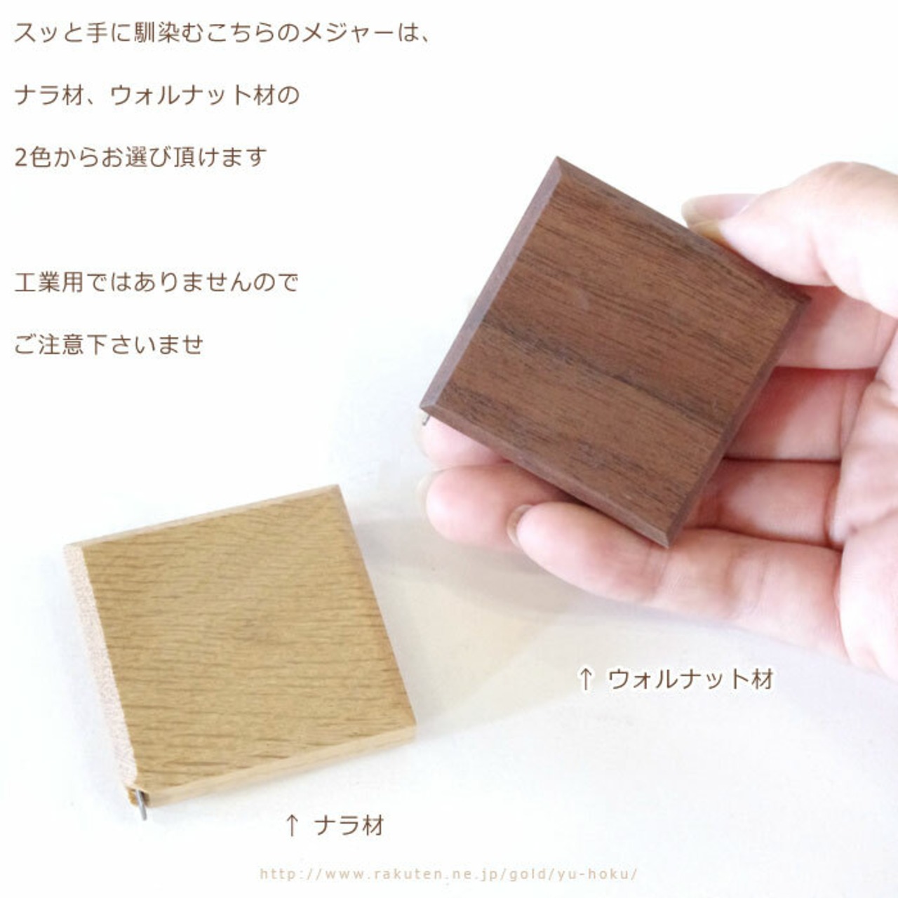 手の中に包み込む事ができ、胸ポケットなどに入れても気にならないような、薄型木製メジャーです。