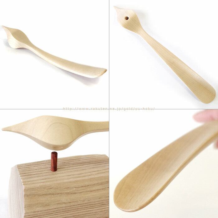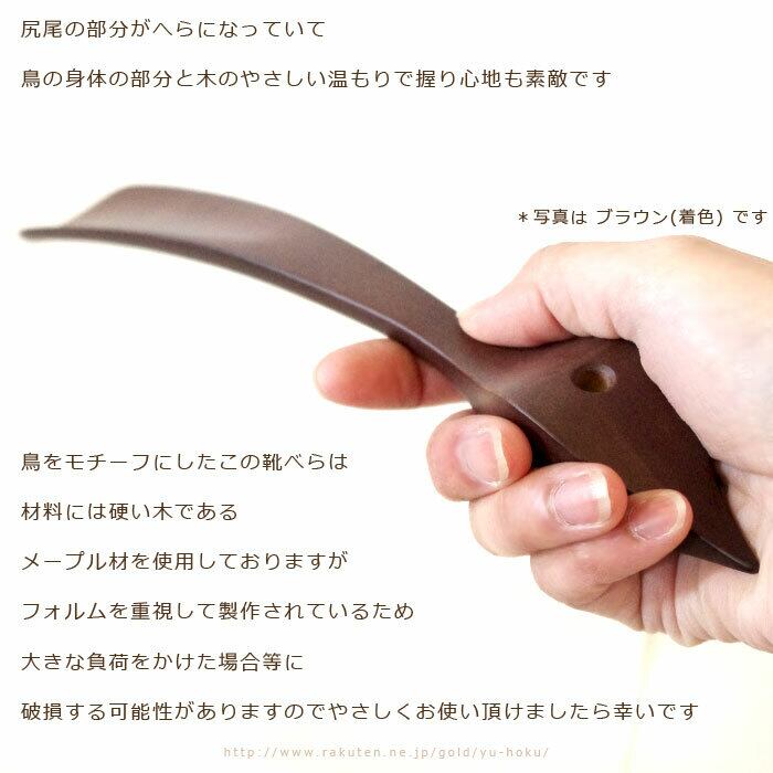 鳥をモチーフにしたこのくつべらは、材料には硬い木である「メープル材」を使用してはおりますが