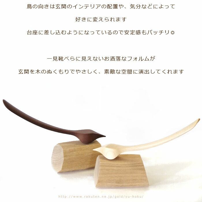 まるで鳥のオブジェのような、玄関のインテリアにもおしゃれな台座付き木製靴べら