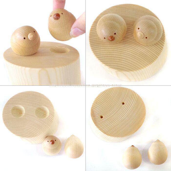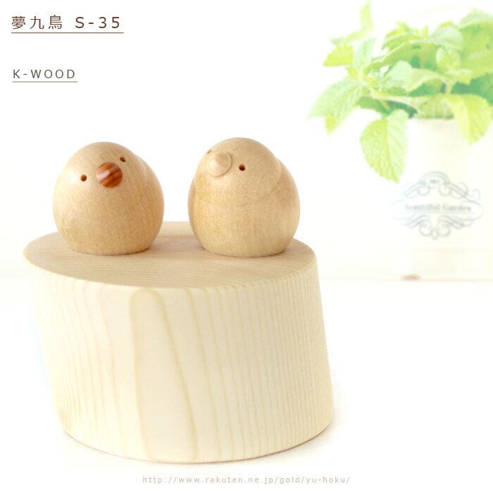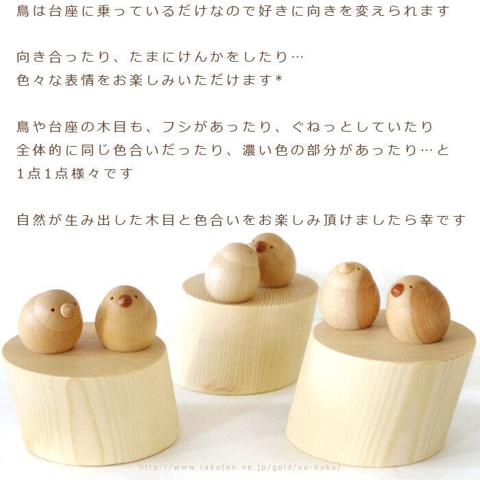 切り株のような台座に乗っているのは、ぷっくらとした体の可愛い夢九鳥(ムクドリ)。
