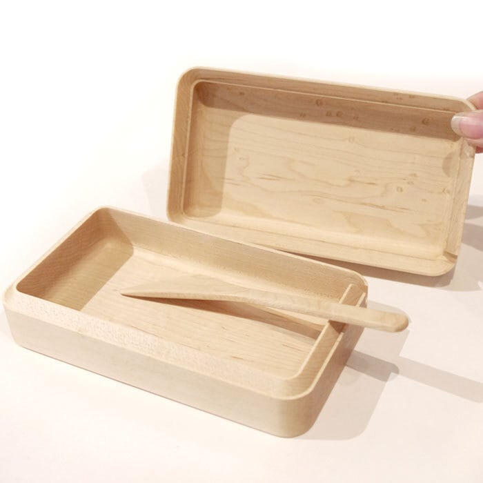 シンプルながらにまるみが手にやさしい、木製のおしゃれなバターケース。