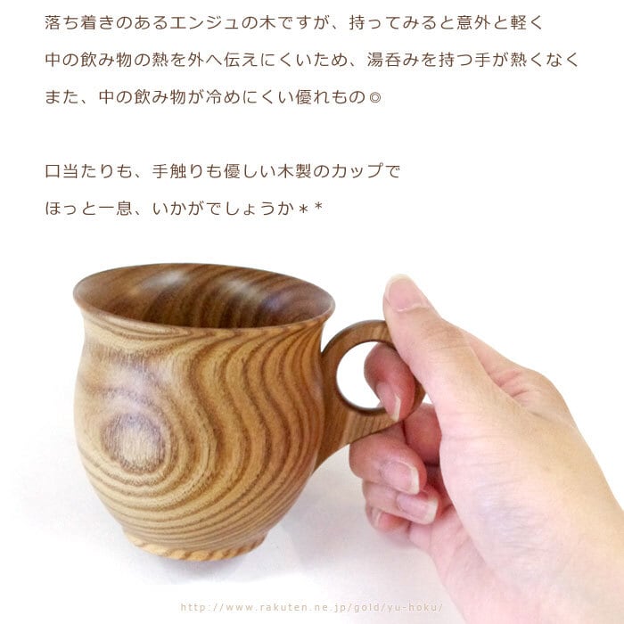・木は熱伝導率が低いため、あたたかい飲み物を入れると予想以上に熱く、口をやけどする恐れがありますので十分にご注意下さい。