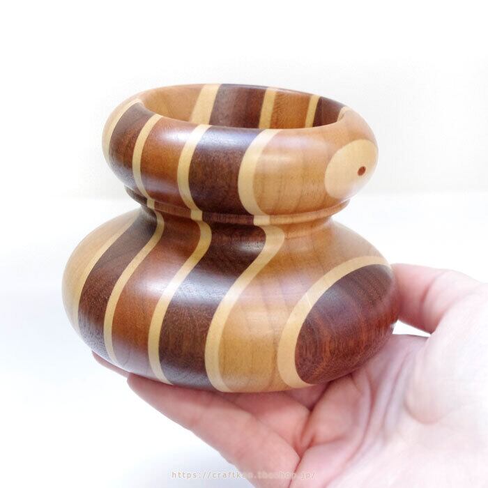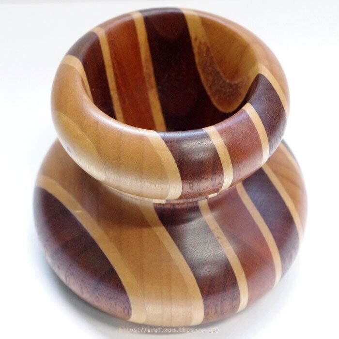 阿部木地工芸所さんが手がけた寄せ木細工の台座と