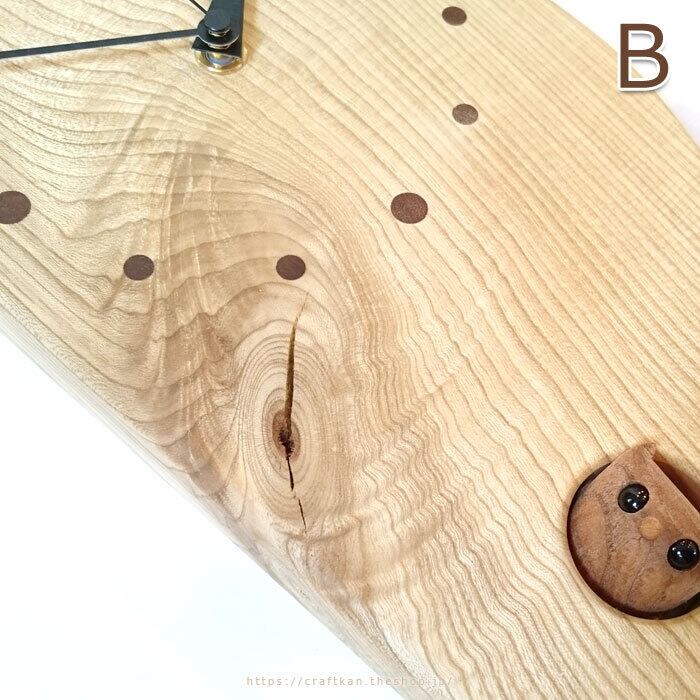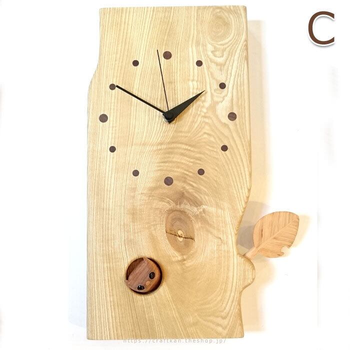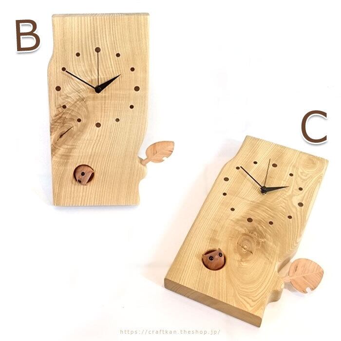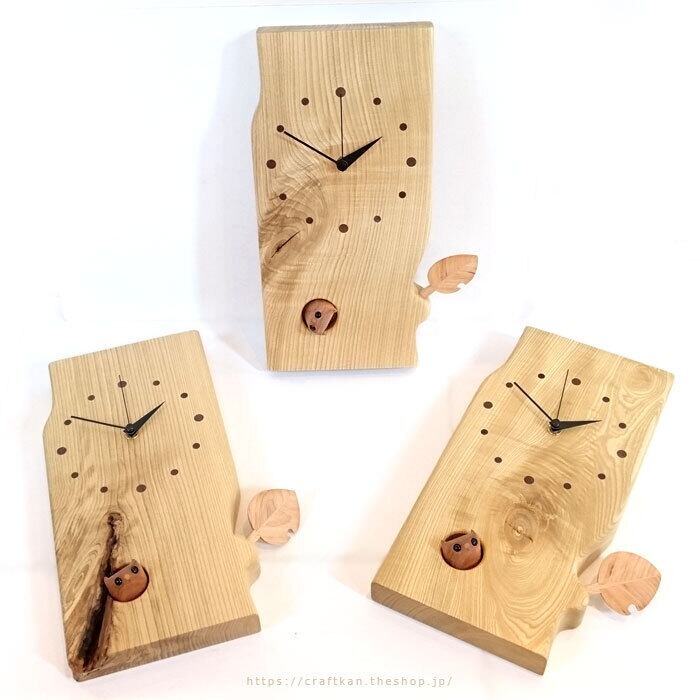 木の幹をイメージした本体に、落ち着いた雰囲気の時計、木の葉が付いており、