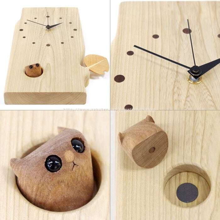 巣穴からひょっこり顔をのぞかせるモモンガがなんとも可愛らしい、スイープ式で秒針の音が静かな壁掛け時計です。