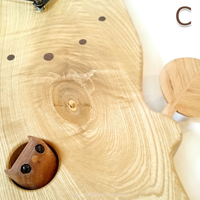 ○材質:本体→セン / モモンガ→クルミ / 木の葉→カバ
