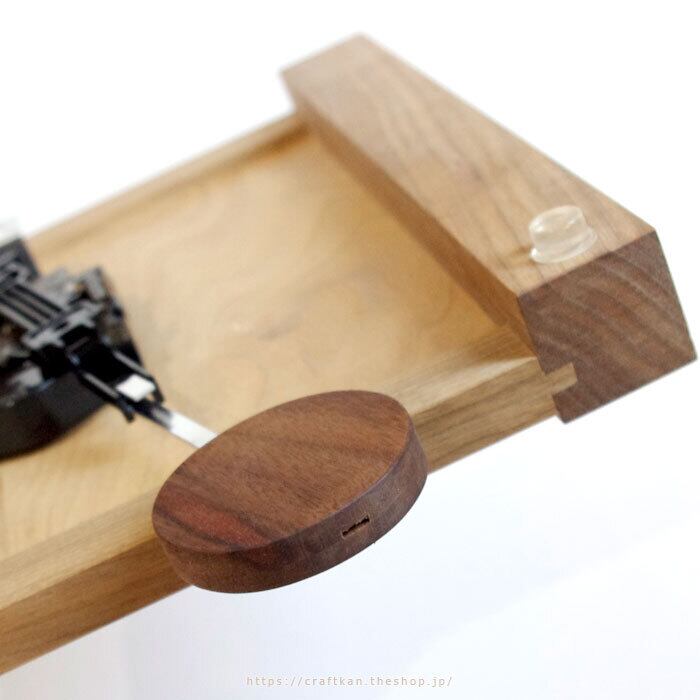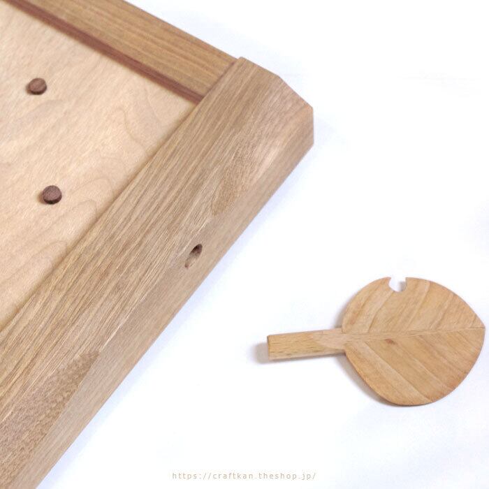 右側面にはちょこんと虫食いのあるユーモアで可愛い木の葉をセットする穴が。