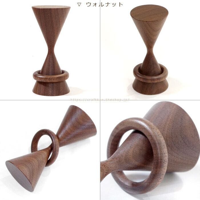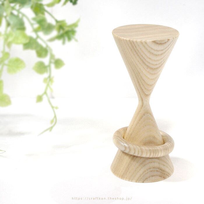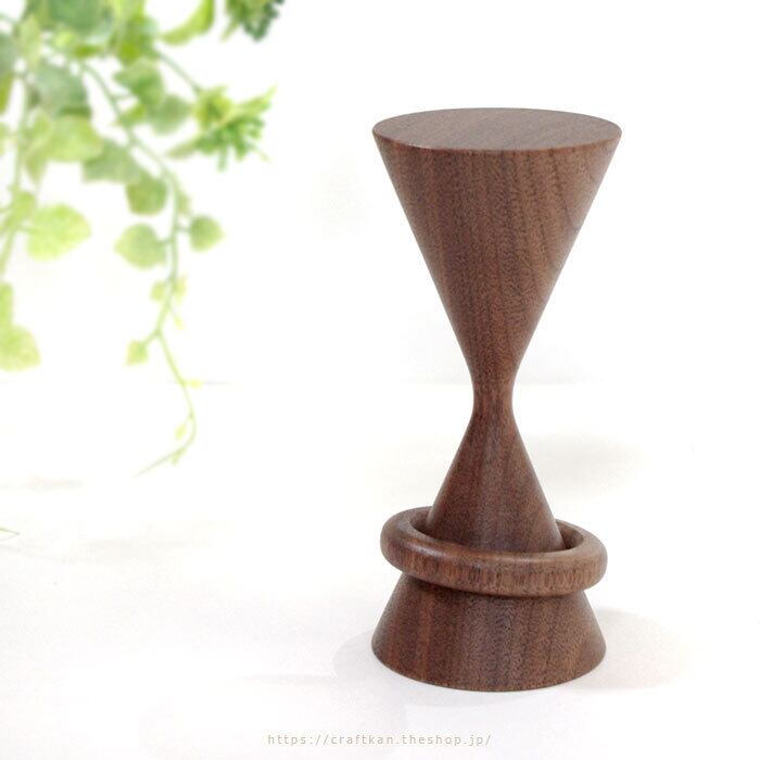机で、引き出しで、散らばりがちな輪ゴムをおしゃれに収納♪ 砂時計のようなデザインに、職人技の光るリングの通った輪ゴムが取り出しやすい輪ゴム掛けです