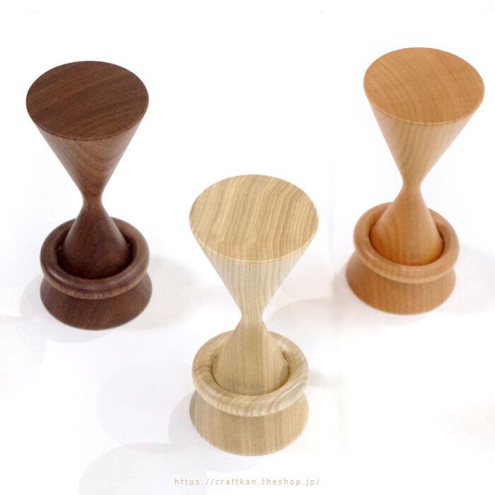 どちらが上でも置けるような、砂時計のような形の安定感のあるデザインの本体、