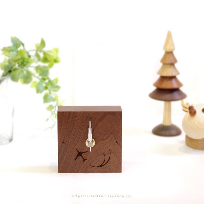 机や、ベッドサイドなど、ちょっとした所に置ける、小いさめな木製置き型時計です。