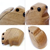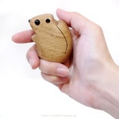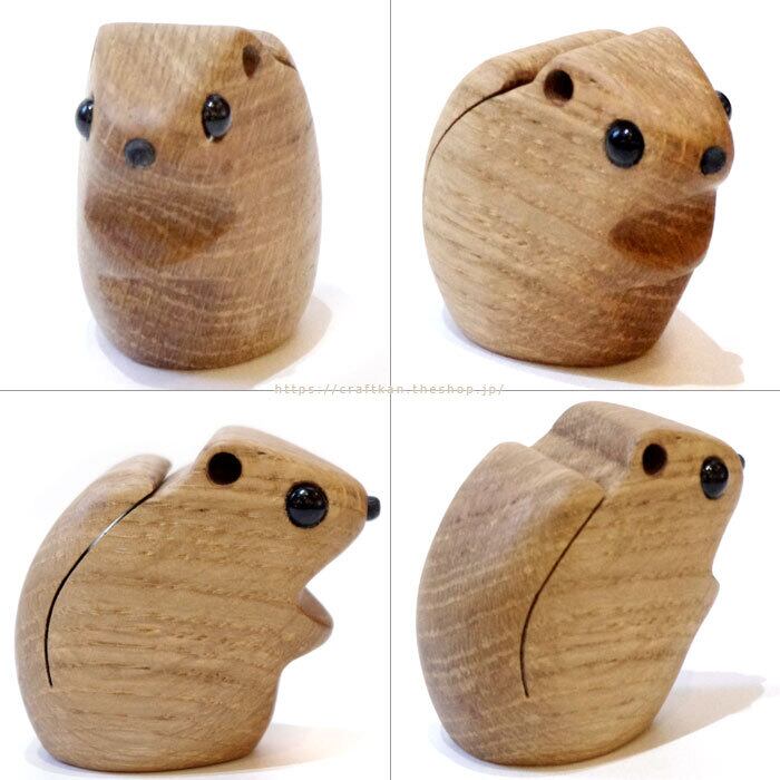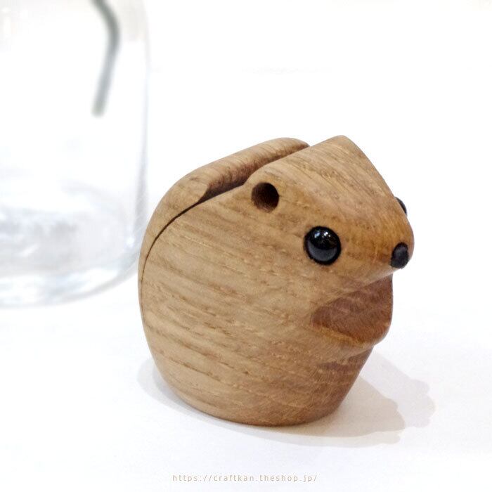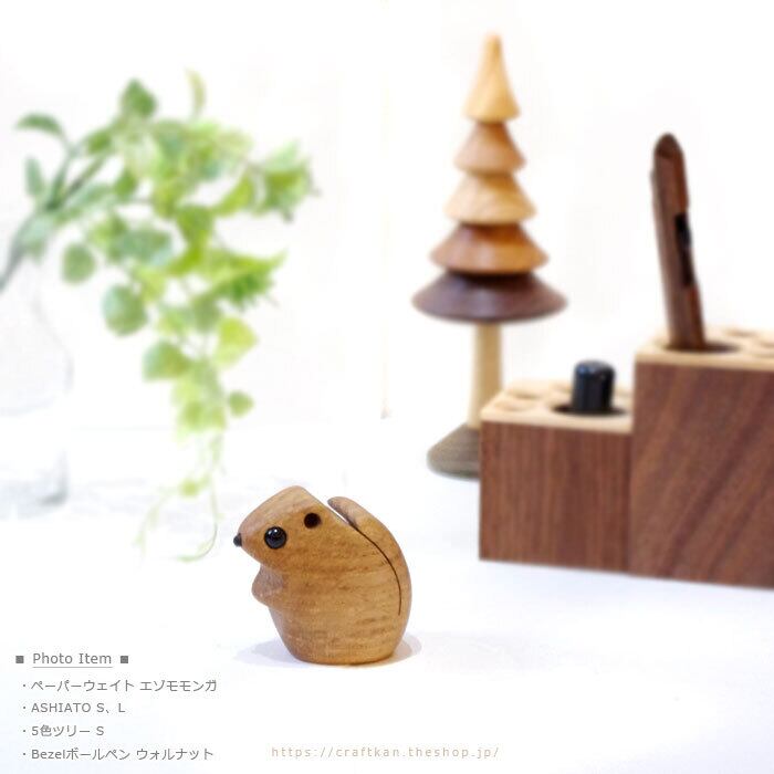 どこから重りを入れたのか不思議な、くりっとした瞳がかわいいエゾモモンガ型の、天然木の木目が楽しめる木製ペーパーウェイト
