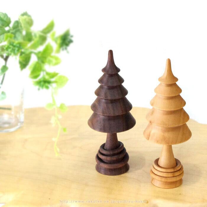 パーツを組み合わせず、1つの木の塊から全て削り出して作ったリング付きのツリー、“リングツリー”です。
