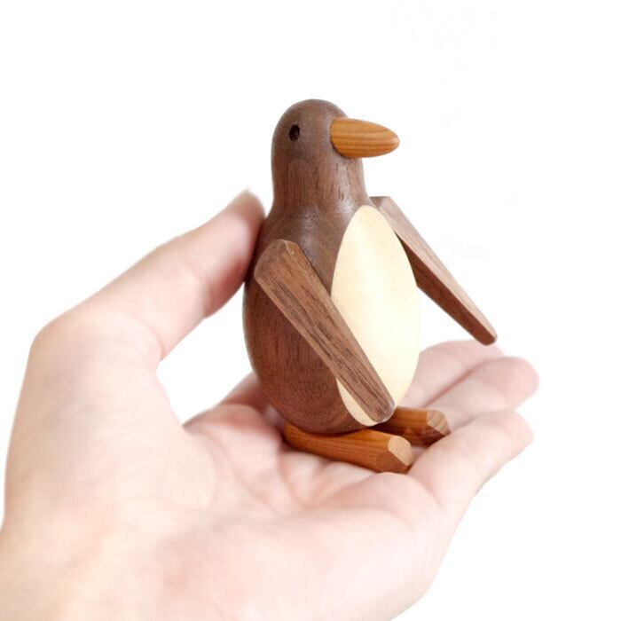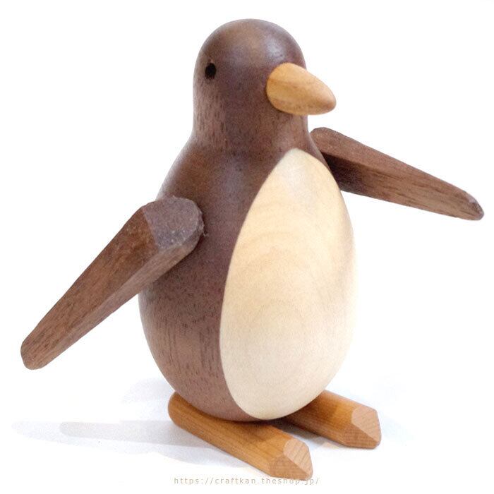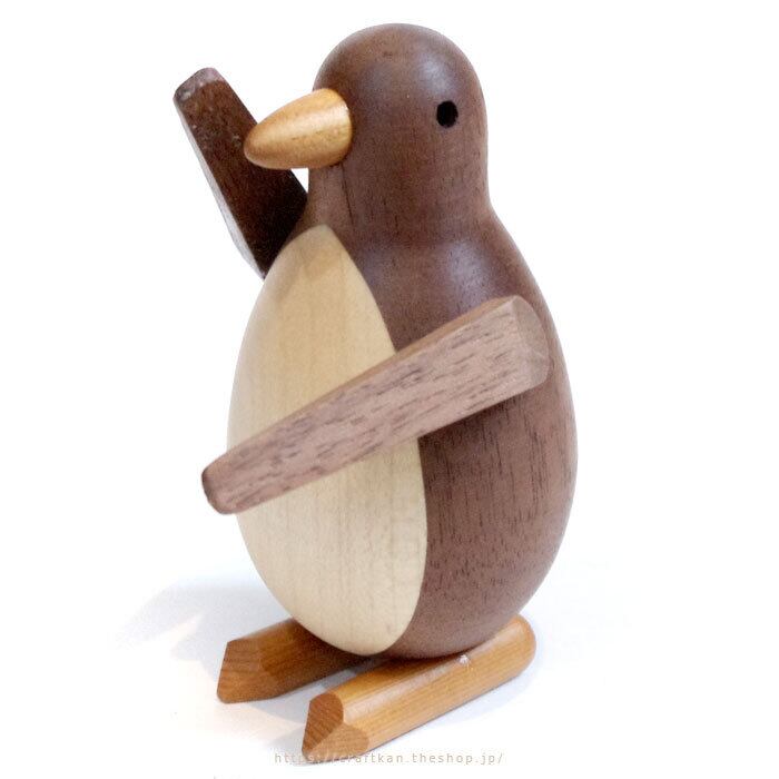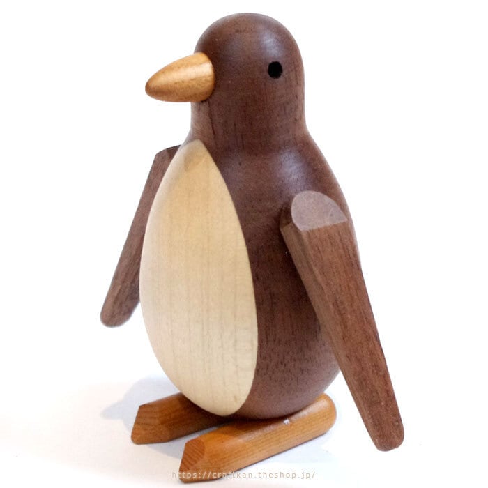 そんな、様々なペンギンの表情を腕の角度を変える事で楽しめる、可愛い木製のペンギンです。