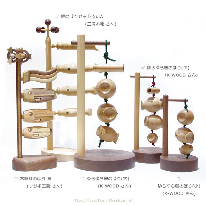 木工旋盤とノミを使って職人さんの “てしごと” により生み出されたぬくもりあふれる室内用の鯉のぼり、