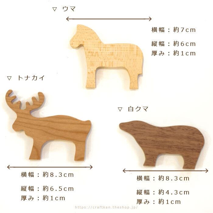 ○商品サイズ:トナカイ(※完売)→約65×83×10mm、白クマ→約43×83×10mm、ウマ→約60×70×10mm