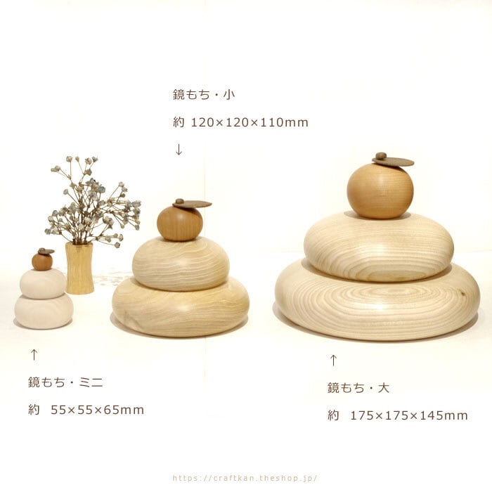 木のぬくもりがやさしい木製の鏡餅です。
