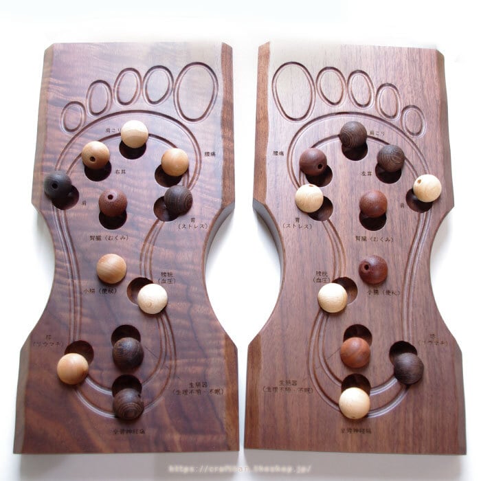 左右それぞれ11ヶ所のツボが刺激できる、木製の足裏のツボ押しボードです