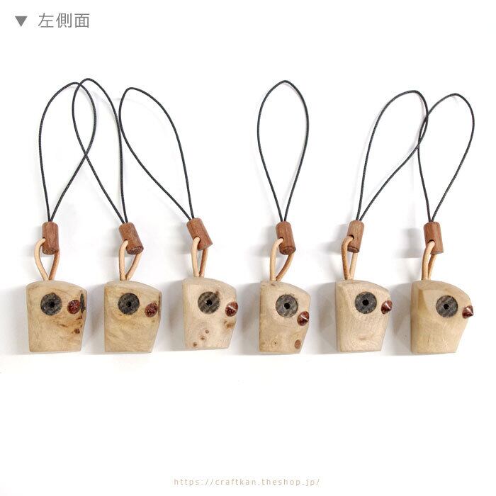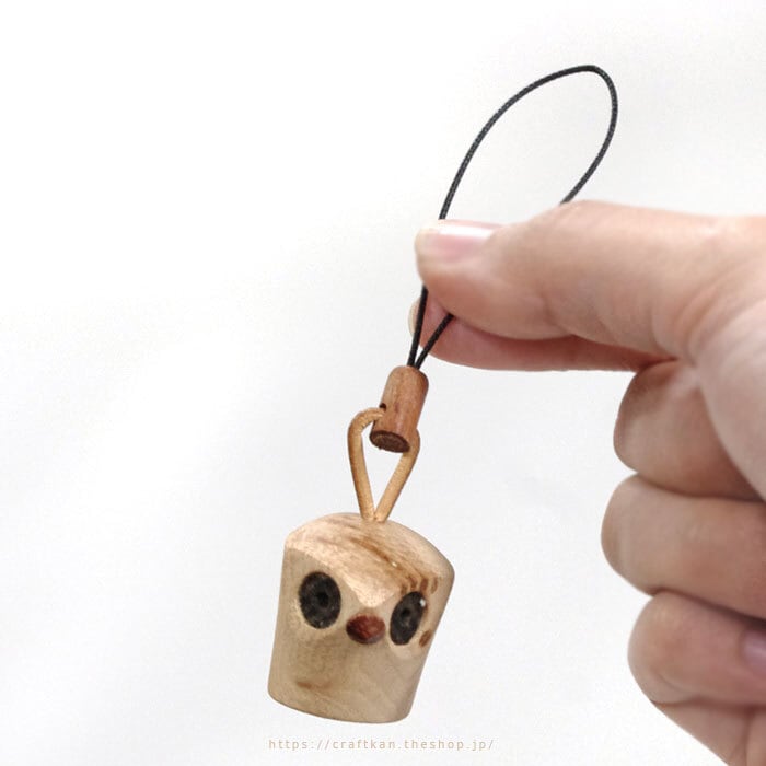 普段とは違う材質を使用して作られた、限定タイプの三浦木地さんの鈴入りストラップフクロウです