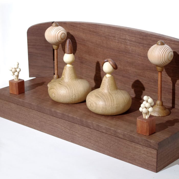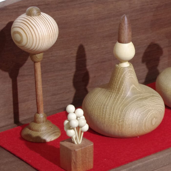 着色を一切せず、天然木が持つ自然の色合いを生かしてうまく組み合わせたひな人形は
