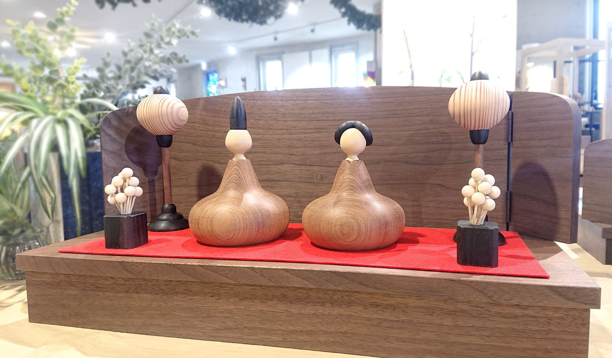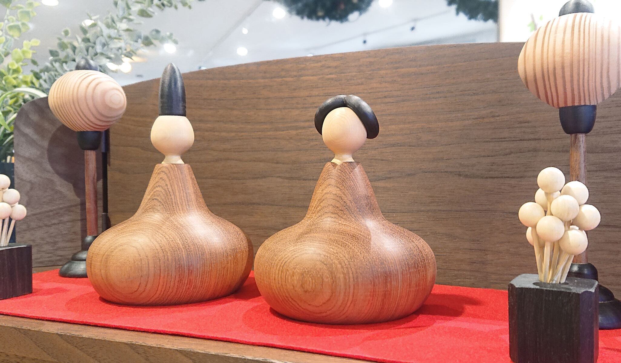 着色を一切せず、天然木が持つ自然の色合いを生かしてうまく組み合わせたひな人形は